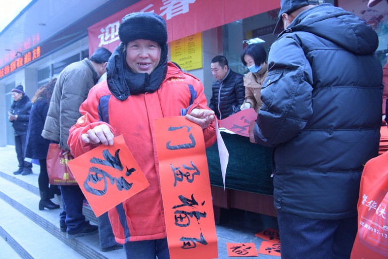 活动现场,活动中心书法教师、书法兴趣班的十多位“小书法家”及井陉县教育系统和社会各界书法名人展纸援笔,挥毫泼墨,广大民众争先恐后排队、预订。虽值寒冬腊月,活动现场却是暖意涌动,春意盎然。短短3个小时,活动为现场群众送出共计800余副春联。