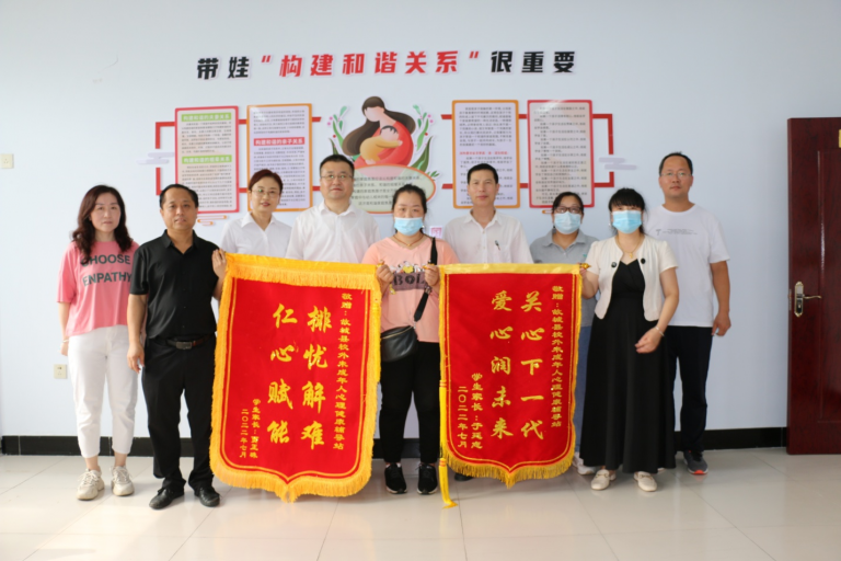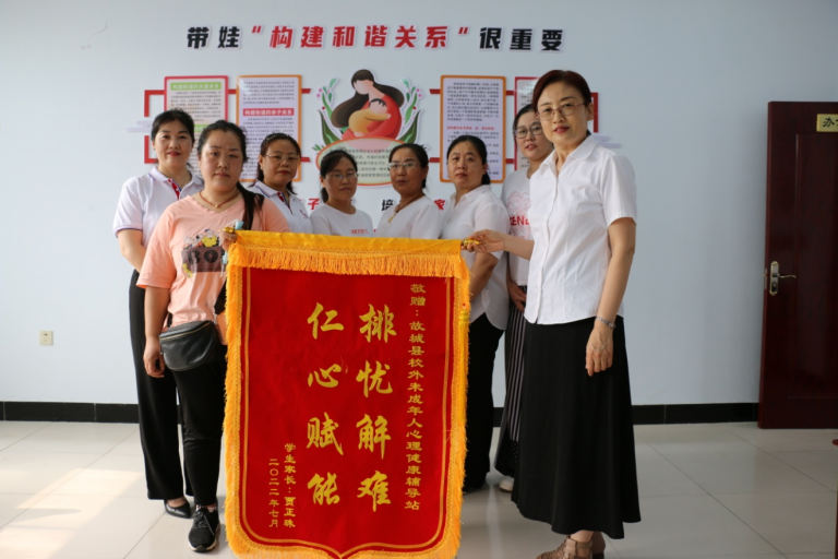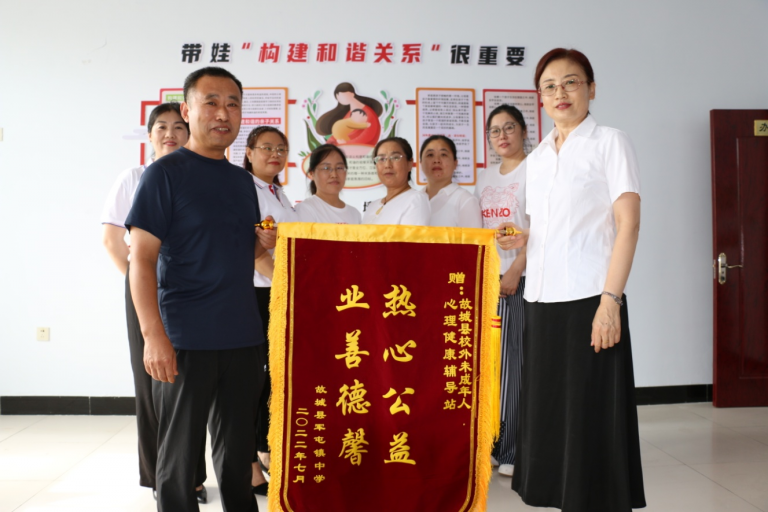 2022年7月26日上午,故城县未成年人心理健康辅导站上演温馨一幕。董子中学、建国中学、军屯中学、西半屯中学、故城中心校师生代表及部分家长都各自送来了锦旗,为心理辅导站对学生心理健康教育工作提供的帮助表示由衷的感谢,代表所有曾经受到心理辅导站贴心关怀的学生表达感激之情。县教育局局长王志利同志、副局长袁自才同志亲临现场指导工作,并亲切与学生家长合影。