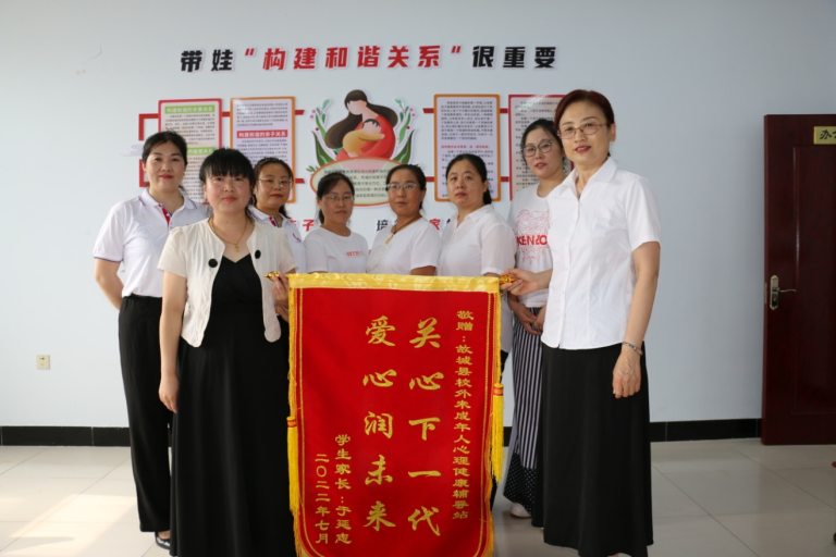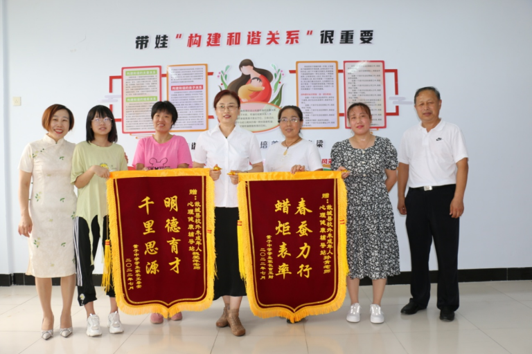 魏爱萍校长表示,锦旗是一份荣誉更是一份责任,心理辅导站将不断发展、完善情绪疏导和心理咨询,不仅要助力学校心理健康服务和全社会青少年心理健康发展,更要为全社会心理健康发展、促进社会和谐贡献自己的力量!