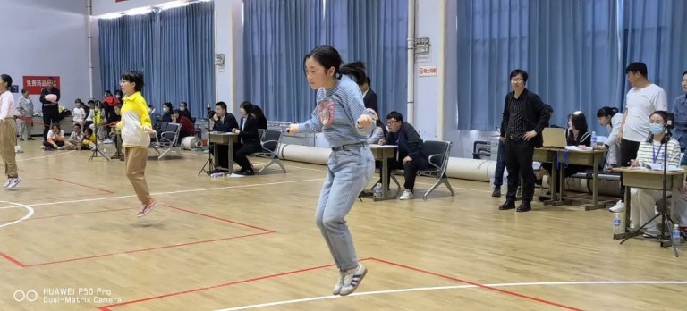 随着裁判员的一声令下,只见一根根彩绳立刻舞动起来,小选手们就像空中跳跃的小精灵,绳子在他们脚下“嗖嗖”地穿过,每个选手都展现了不凡的实力。