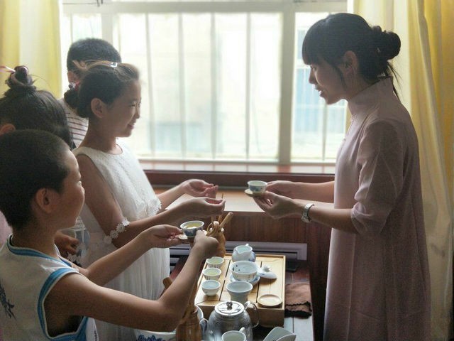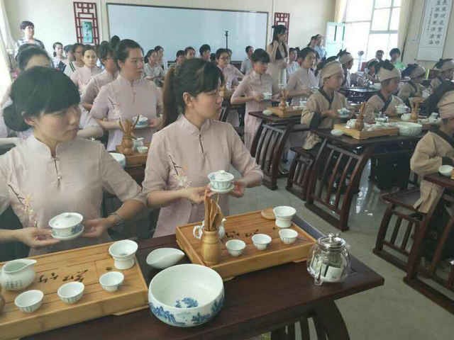 在为期两天的培训中,省级茶艺培训师赵诗雨、孟庆瑶老师,为参加培训的80余名师生送上一道丰富的文化盛宴。师生们不仅了解了茶的起源、种类、各种茶具的用途等知识,还亲自动手,完成了温杯洁具、制茶、温润泡、冲泡、敬茶、品茶的过程,尤其是敬茶、品茶等环节,师生们学习礼法,美心修德,深深感受到传统文化的强大魅力。