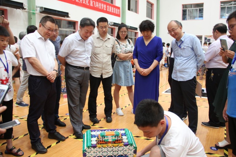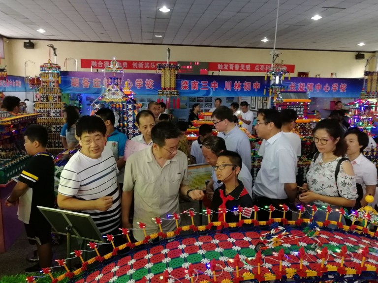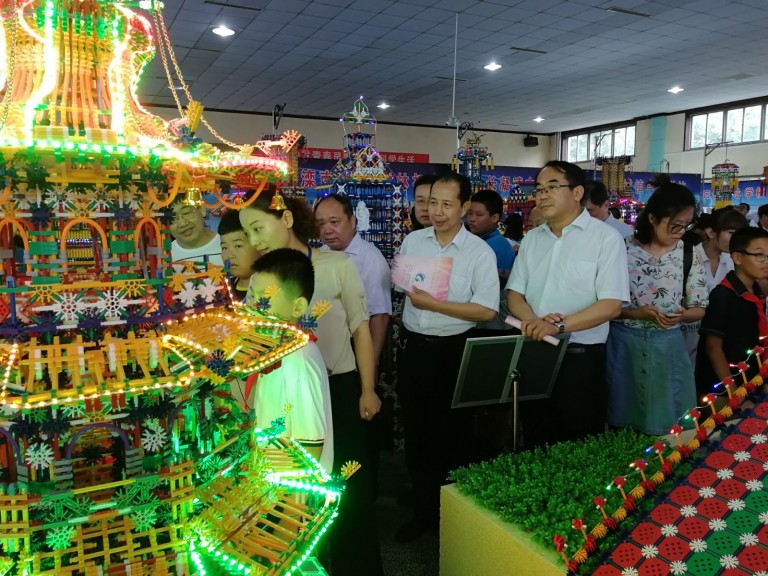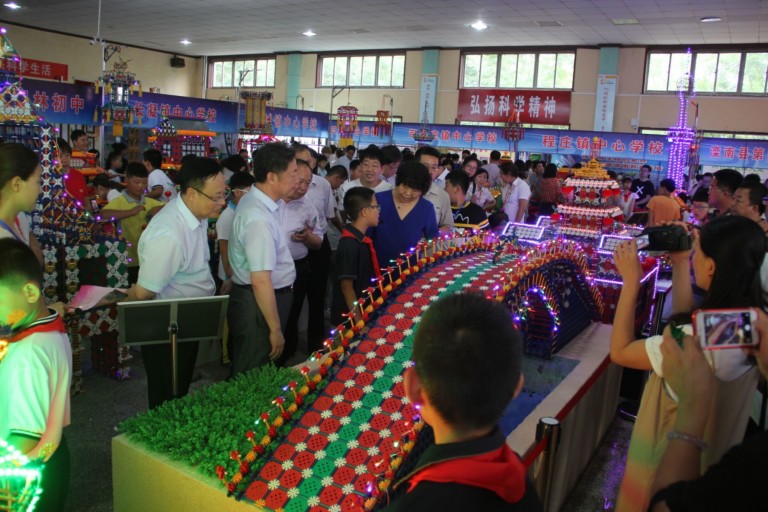 开幕式后,领导一行参观了滦南县首届科技文化节作品展,边看边听孩子们讲解,不时和孩子们亲切交流。琳琅满目的综合性社团成果展,包括拼装插件类、机器人项目、3D打印机作品、陶艺制作类、小机床制作类、航模类等科技类相关社团活动及剪纸、篆刻、衍纸等非科技类特色社团项目。作品精彩纷呈,项目繁多,受到与会领导一致好评,盛赞滦南科技文化活动开展丰富,不但涵盖全县范围,而且每个乡镇类型不一,特色凸显,且科技含量高。