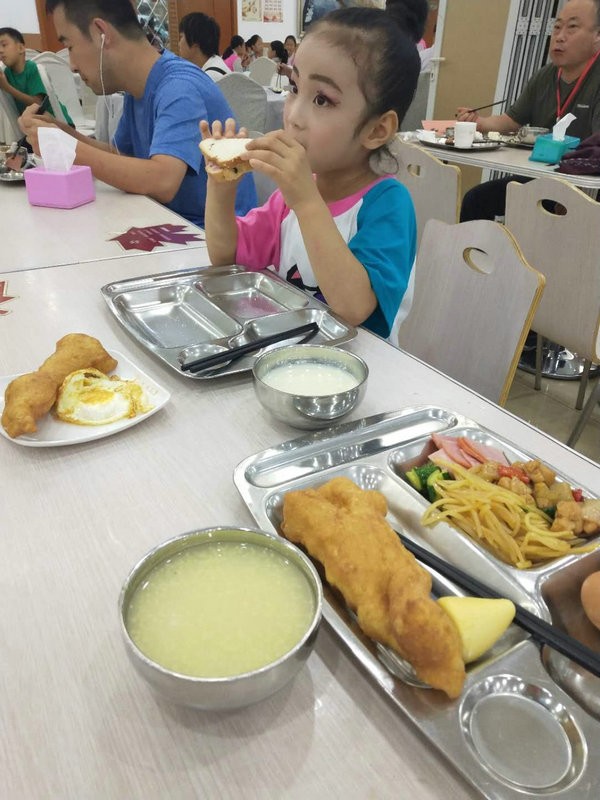 第二天早上5点半就起来化妆了,家长们也都跟着帮忙!