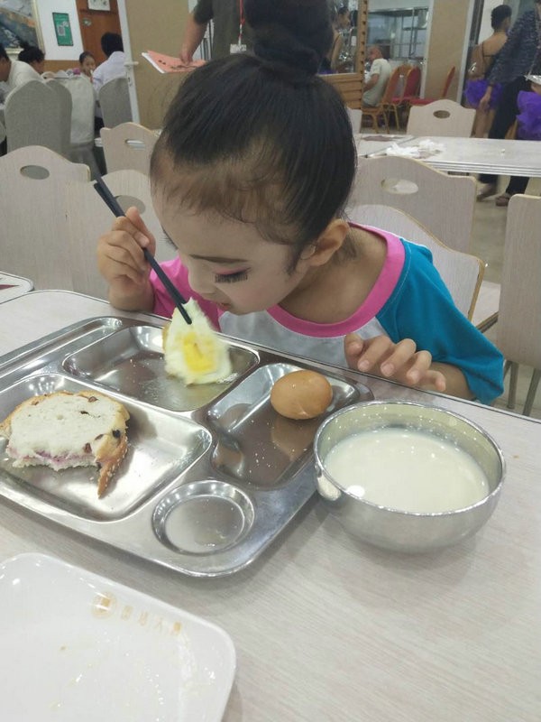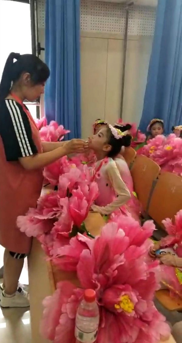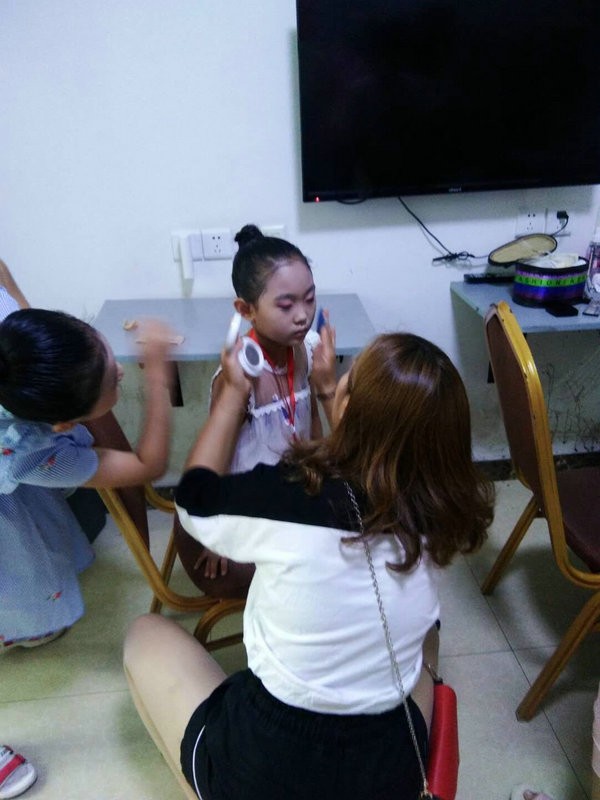 吃过早饭,我们准备去候场,老师为我们一个个再补妆,为比赛做最后的准备!