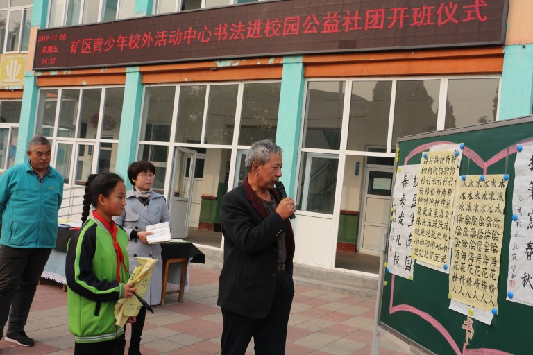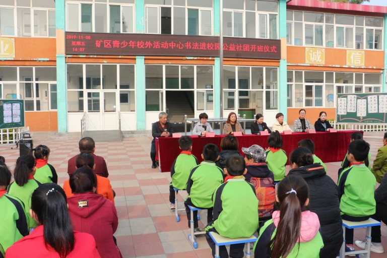 11月8日下午,书法公益社团开班仪式在北寨学校举行。参加此次活动的有区教育局党组书记、副局长苏丽霞,区教育局思政体卫艺科科长许文华、副科长王红梅,区青少年校外活动中心主任高继红,区青少年校外活动中心书法教师朱宝明老师以及北寨学校全体师生和家长。